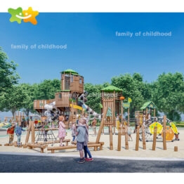 Adventure Community Park Tree House Outdoor Kids Slide Playground Climbing Structures