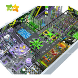 Usual the indoor playground has many multifunctional areas. like the funny zone, physical zone, training zone, trampoline zone, rock climbing zone. What’s more, the pillars inside are galvanized steel, covered by soft foam, providing top protection for children. Because all the plastic components inside are made of LLDPE and very friendly with kids. Surely it can serve for over 10 years under normal use.